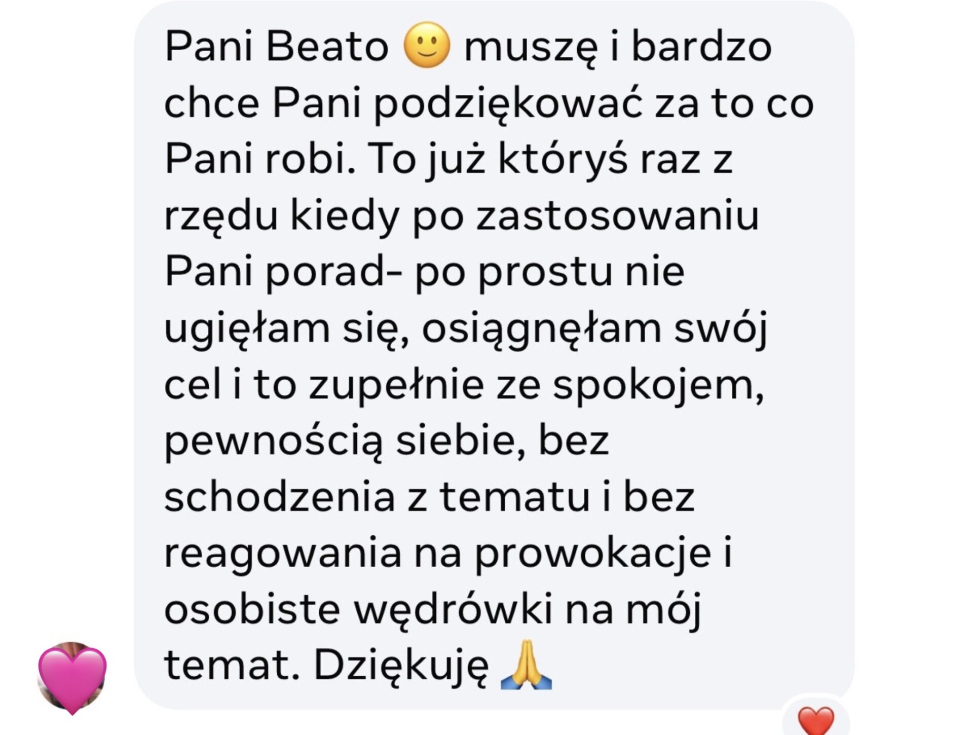 Napisz do mnie bezpośrednio: kontakt@beatakolodziejczyk.pl Odpowiadam osobiście.